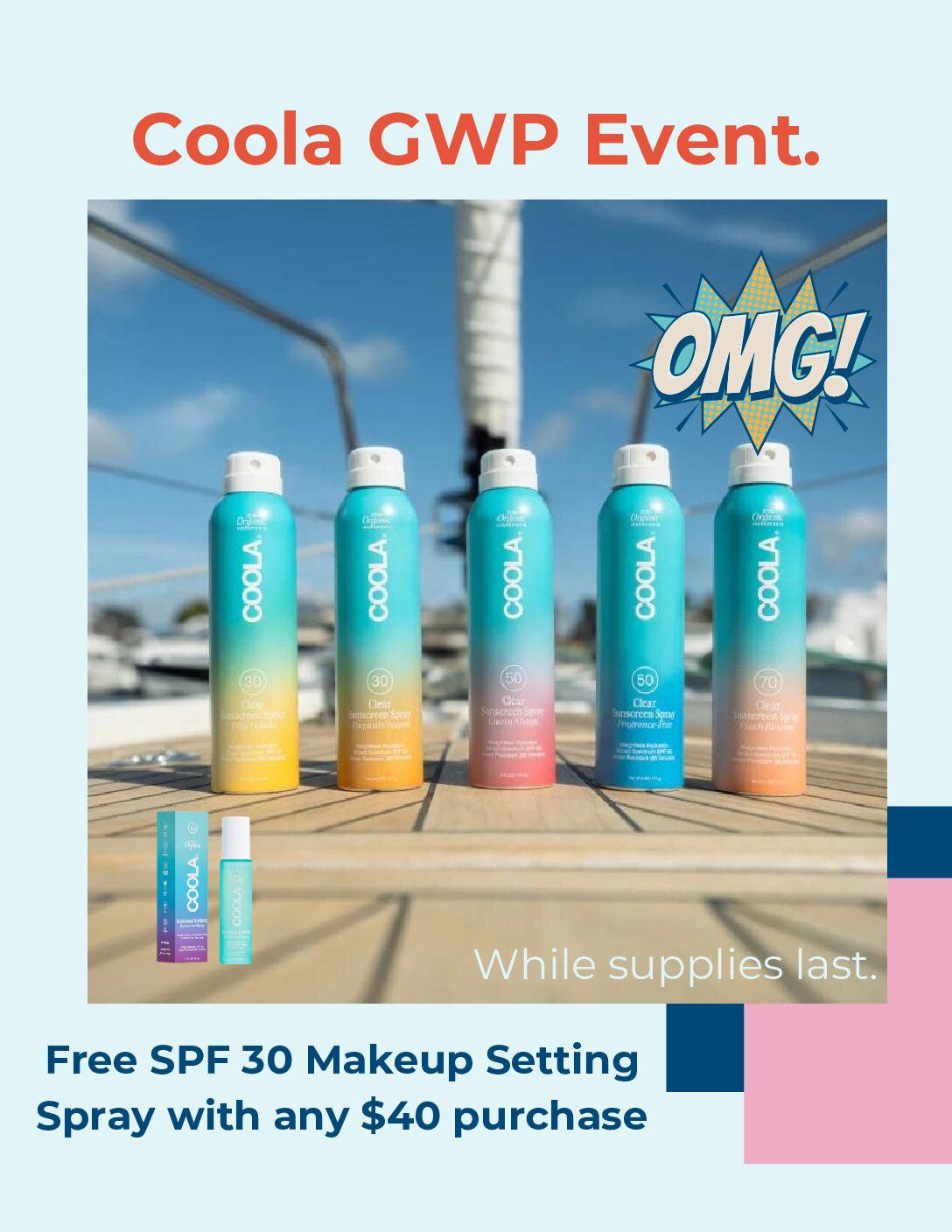 Only while supplies last, get an amazing SPF 30 Makeup Setting Sunscreen Spray with any $40 Coola purchase. This weightless SPF 30 setting mist that helps your makeup last longer while reducing shine. It protects your skin with water-resistant SPF that won’t disrupt makeup, absorbs excess oil for a mattifying finish and can be used as a protective primer before makeup, or mist over makeup to set and protect.