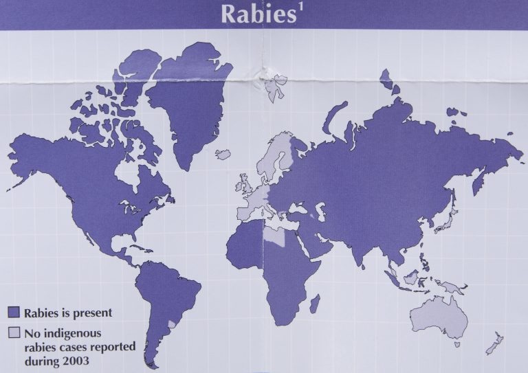 Rabies is a viral disease caused by the bite of an infected animal. Rabies can be found everywhere in the world but is a big problem in Asia, Africa, and Central and South America. Contact with all animals, including dogs, cats and monkeys, should be avoided when traveling abroad.